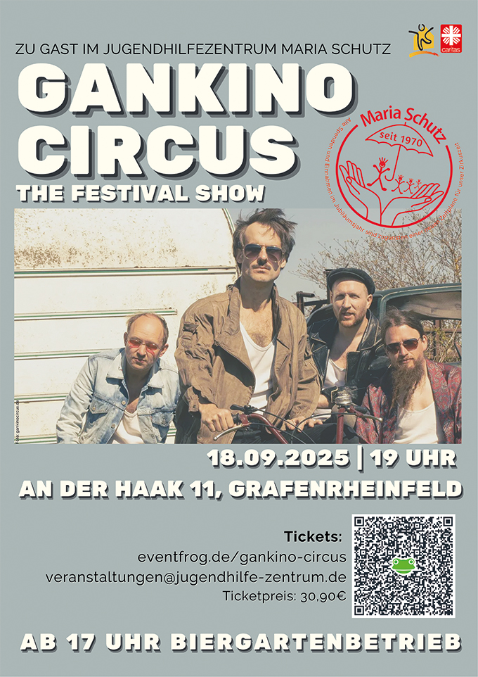 Das Caritas-Jugendhilfezentrum Maria Schutz in Grafenrheinfeld feiert 2025 sein 55-jähriges Bestehen – und lädt zu einem ganz besonderen Jubiläumshöhepunkt ein: Am Donnerstag, 18. September 2025, gastiert die Kultband „Gankino Circus” im eigenen Zirkuszelt (An der Haak 11, 97506 Grafenrheinfeld).